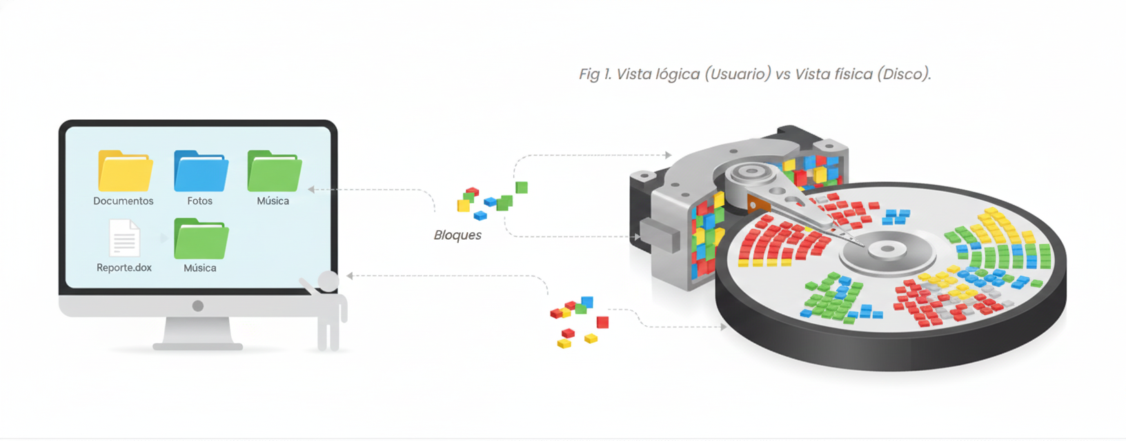 Definición: El SO define la unidad lógica llamada Archivo y la mapea a la unidad física (Bloques en el disco).